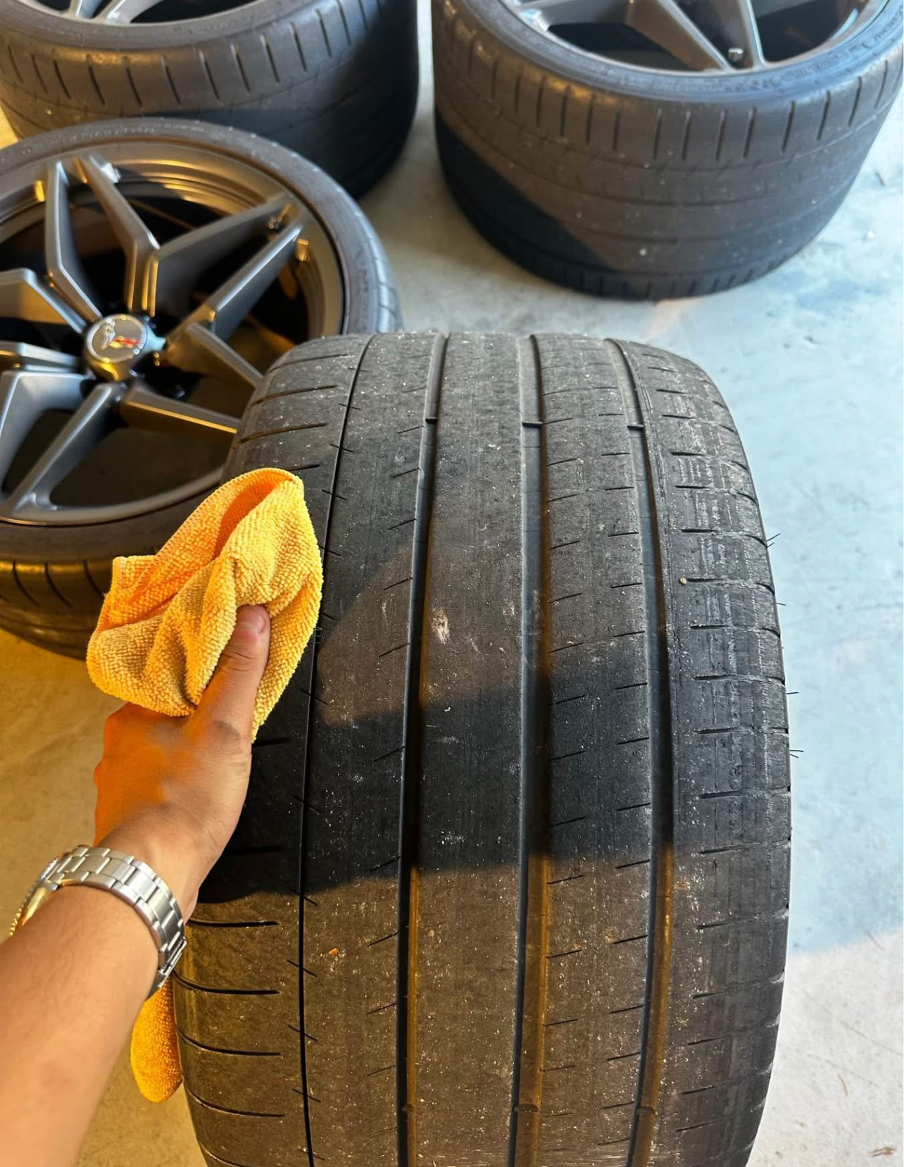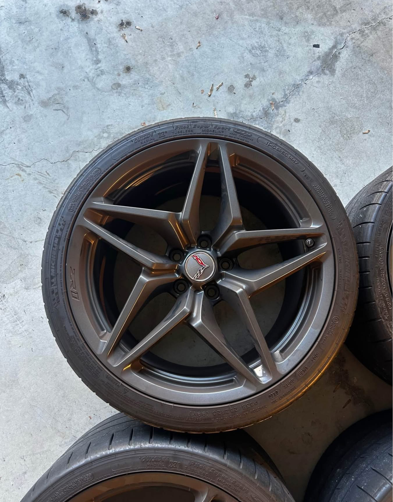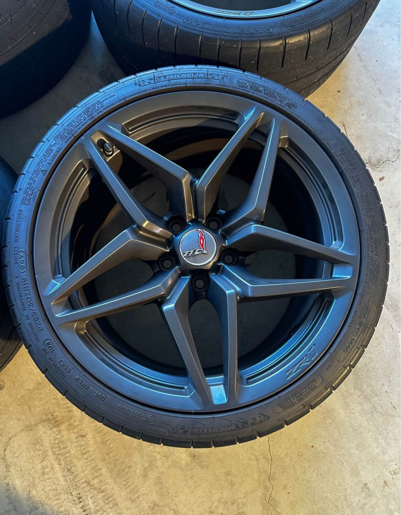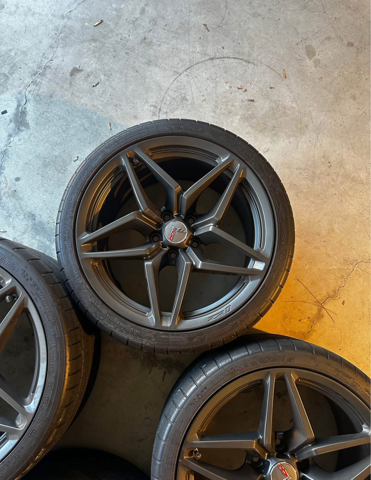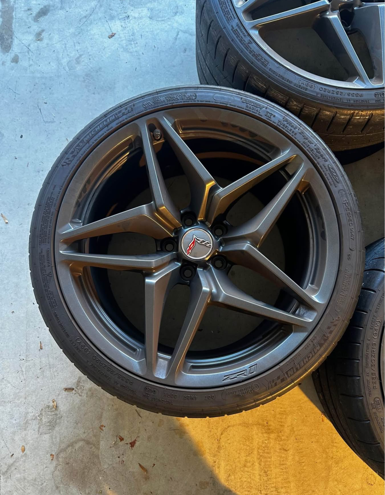 Wheels are in great condition with zero cracks, bends, or leaks whatsoever. tires are a little worn but have TONS of life left. no blemishes on any wheels Wheels will come with two sets of center caps, ZR1 valve caps, TPMS sensors, and so on.
