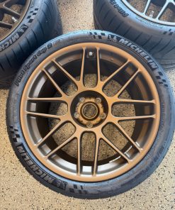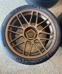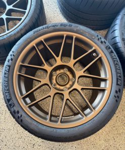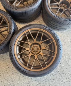 Up for sale is a brand new Camaro ZL1 1LE APEX ARC-8 Wheels Europe. This setup features the highly sought-after APEX ARC-8 lightweight flow-formed wheels in Matte Bronze, paired with Michelin Pilot Sport Cup 2 tires, one of the top track-focused street-legal tires available.