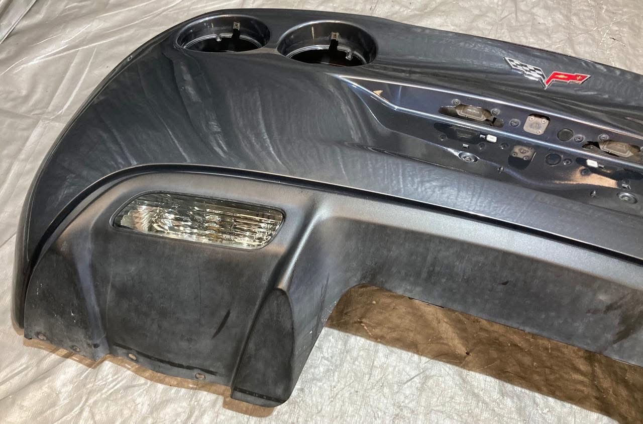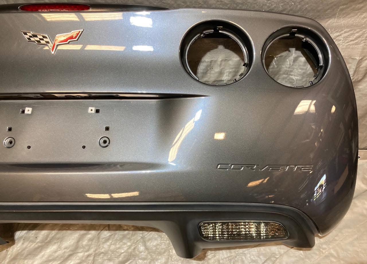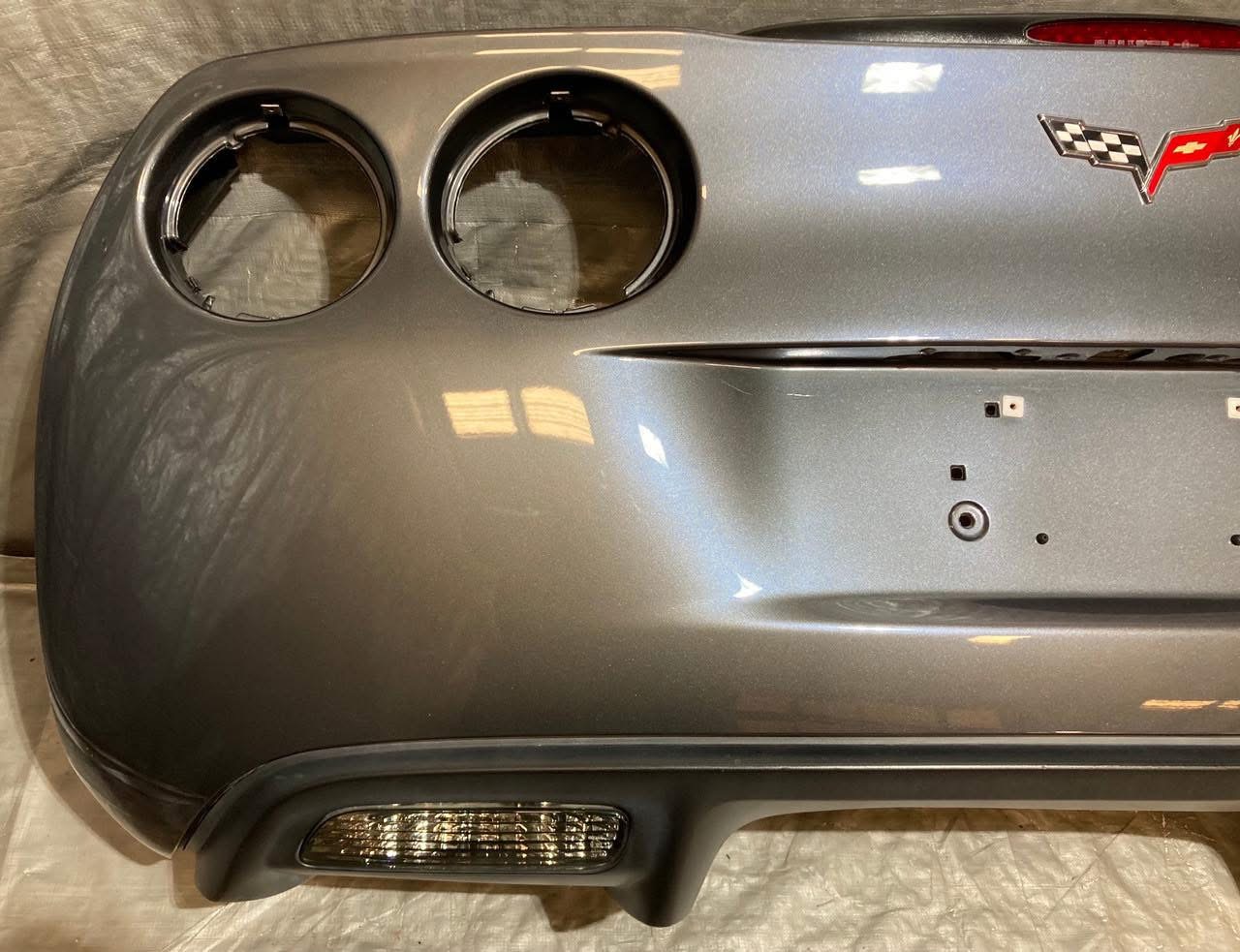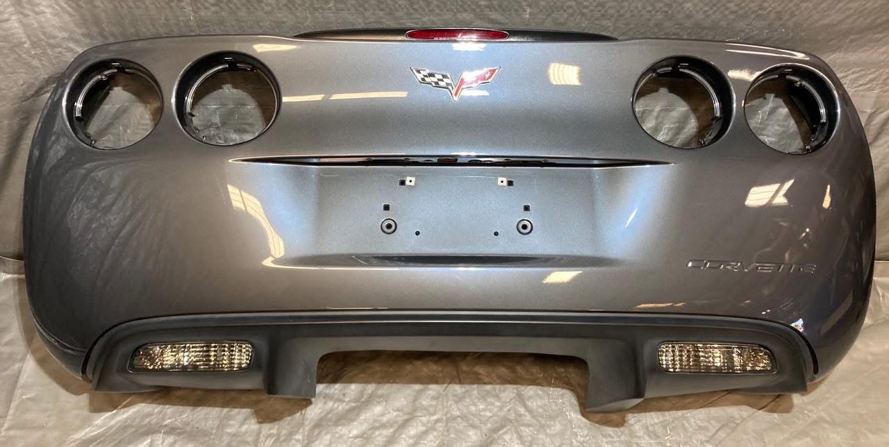 For sale Corvette C6 Rear Bumper Europe.This is a 2005-2013 Chevrolet Corvette C6 Rear Bumper Cover Fascia w/ Diffuser Trim Panel / Cyber Gray Metallic. Everything works as it should.
